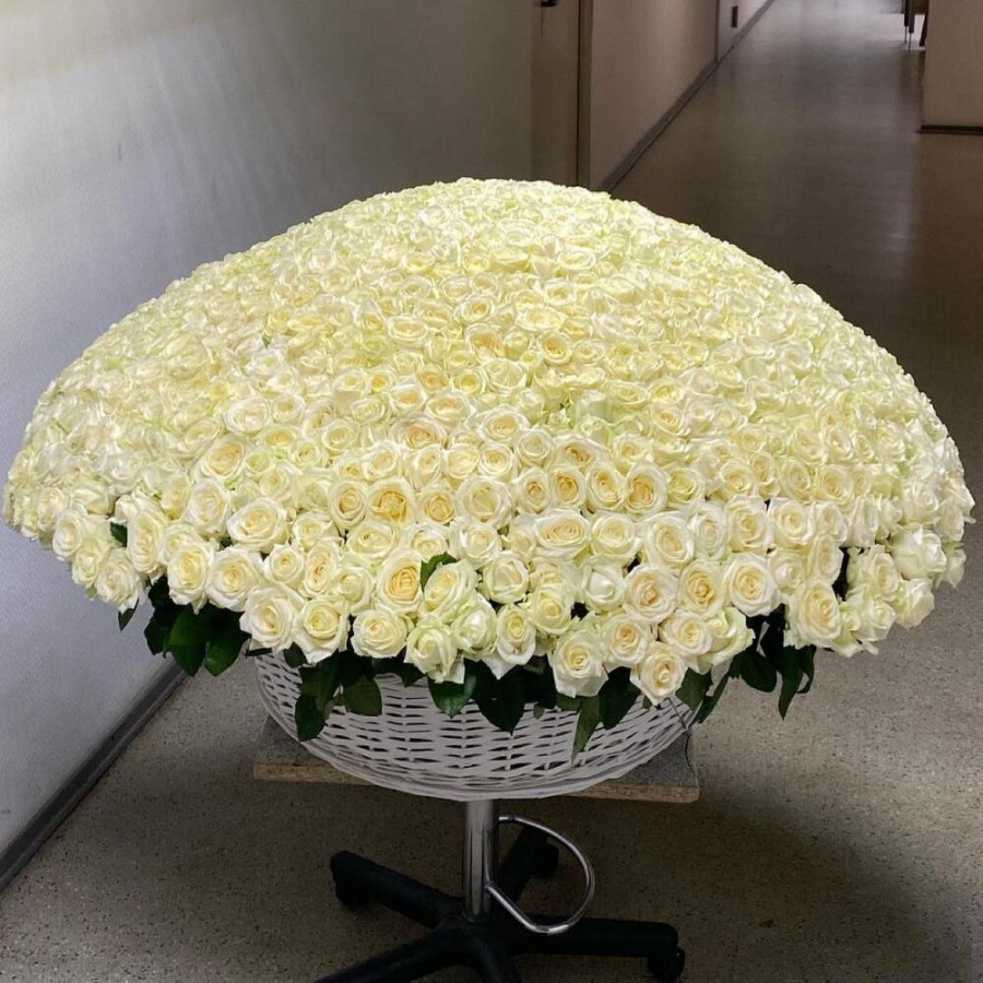 1001 белая роза в корзине «Чистота» в Кисловодске