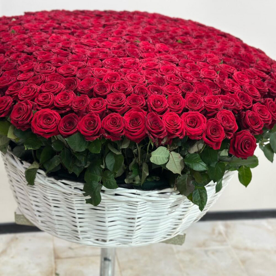 Букет из 501 красной розы в белой корзине в Кисловодске