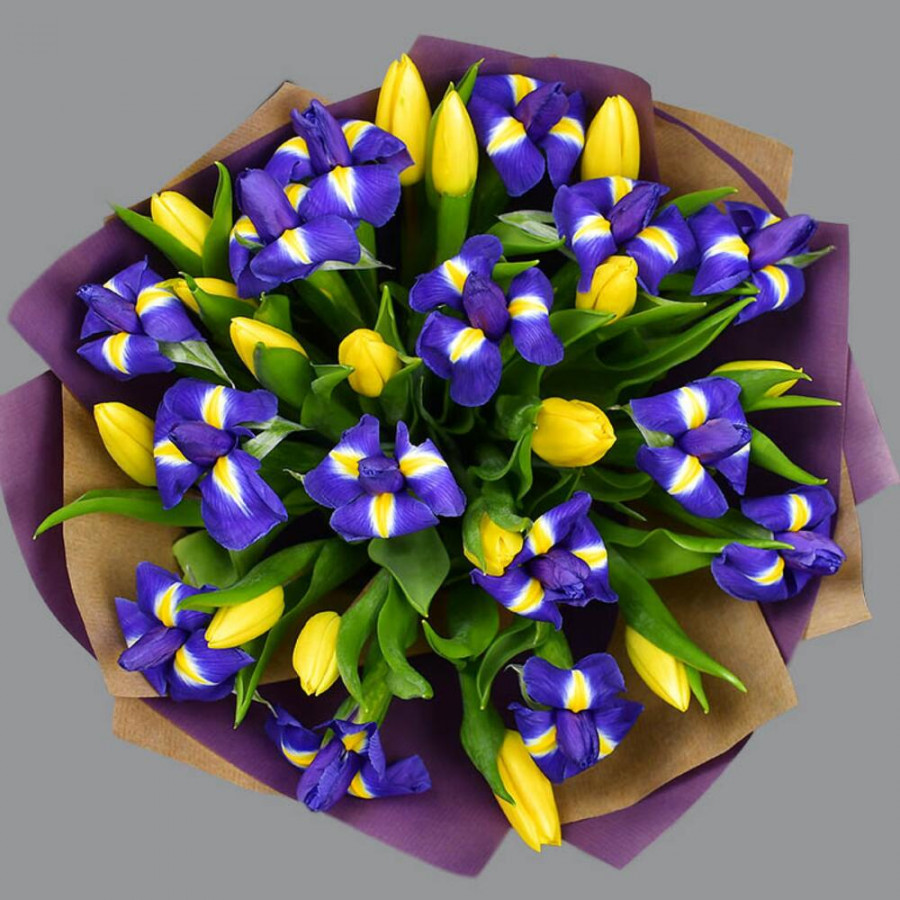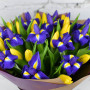 Букет из синих ирисов и желтых тюльпанов в Кисловодске